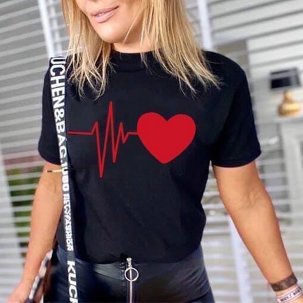 Fashion Heart Printed Short Sleeve Round Neck T-shirt
