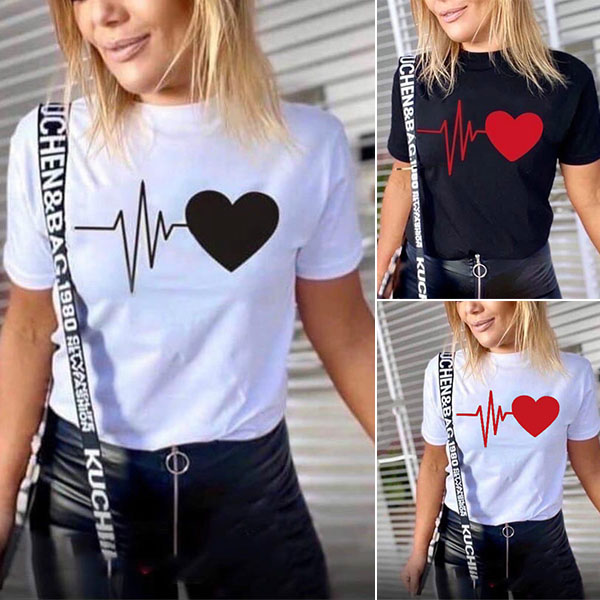Your wardrobe calls for such a simple,cozy,stylish and all-match t-shirt. Crafted from soft and breathable fabric,with short sleeve,round neck and heart printed pattern,this t-shirt can hardly go wrong no matter what kind of bottoms you pair with.