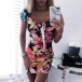 Sexy Square Collar Short Sleeve Slim Fit Printed Dress