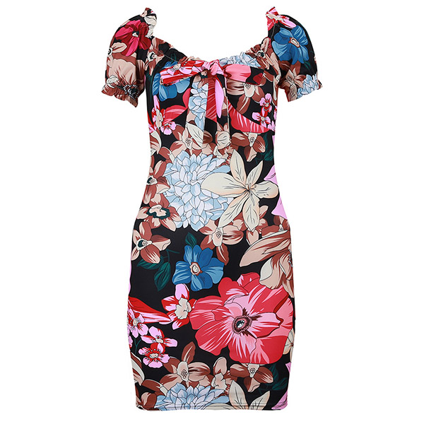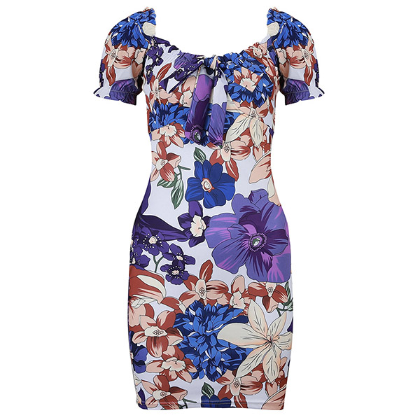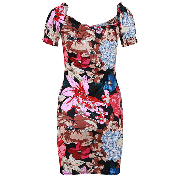 Thanks to the vibrant floral print details,you can look eye-catching enough in this dress. Finished with short sleeve,square collar and a fit silhouette,this dress not only can exude your feminine side,but also can showcase your slender figure. A good choice for your night dating and weekend gatherings.