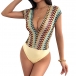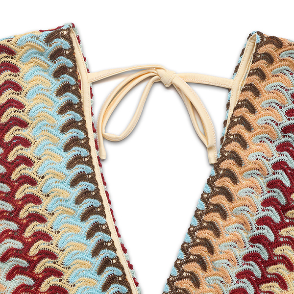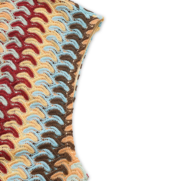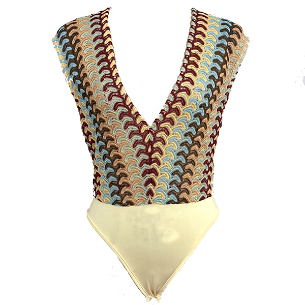 Gå tillbaka i tiden med den här groovy bodyn som fångar 1970-talets frisinnade essens. Vibrerande, flerfärgade vågmönster i en luftig, öppen stickad design skapar en psykedelisk, festivalklar atmosfär och ren vintagemagi. Styla den med plagg med hög midja och platåsandaler för autentiska 70-talsvibbar, eller kombinera med denimklipp och ankelboots för en modern boho-twist.