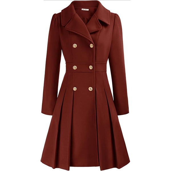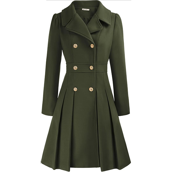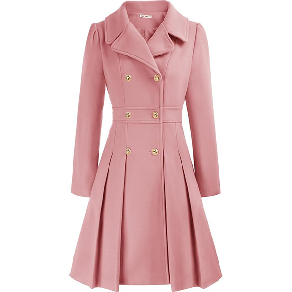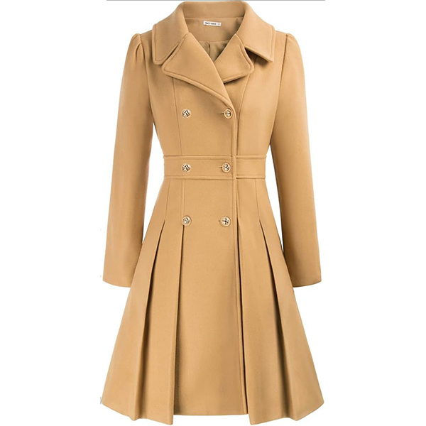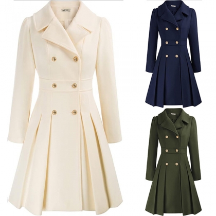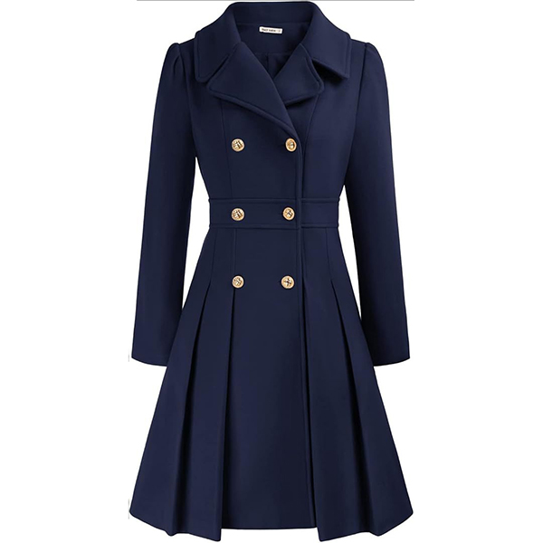 A-linjeformad fodrad kappa med klassiska slag, dubbelknäppning och sidfickor