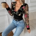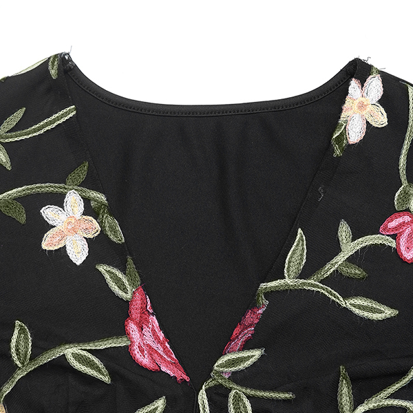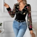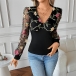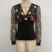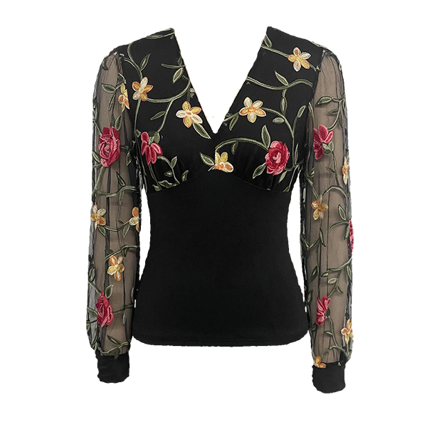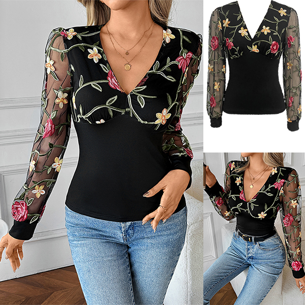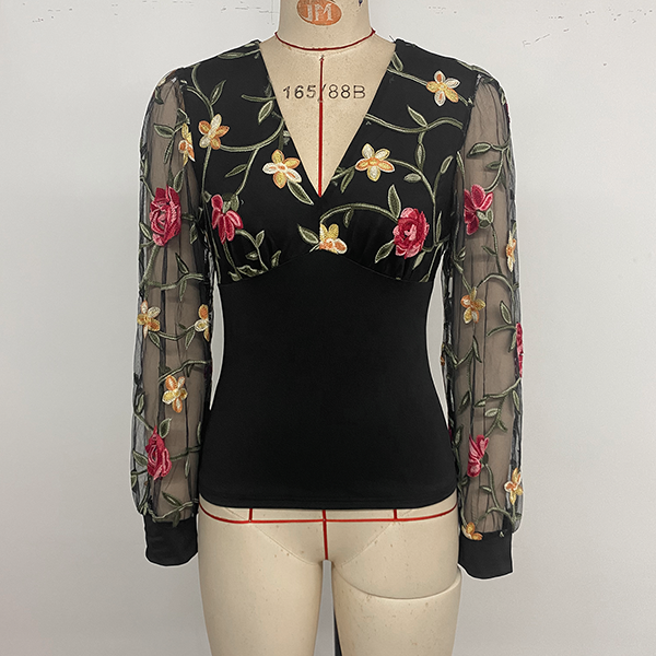Moderiktig skjorta med långärmad V-ringning och blombroderi