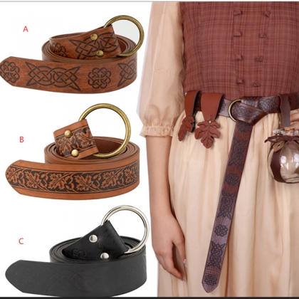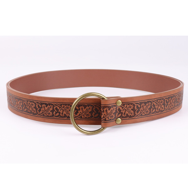 Bälte för dam – bohemiskt O-ringbälte i PU-konstläder med blommönster