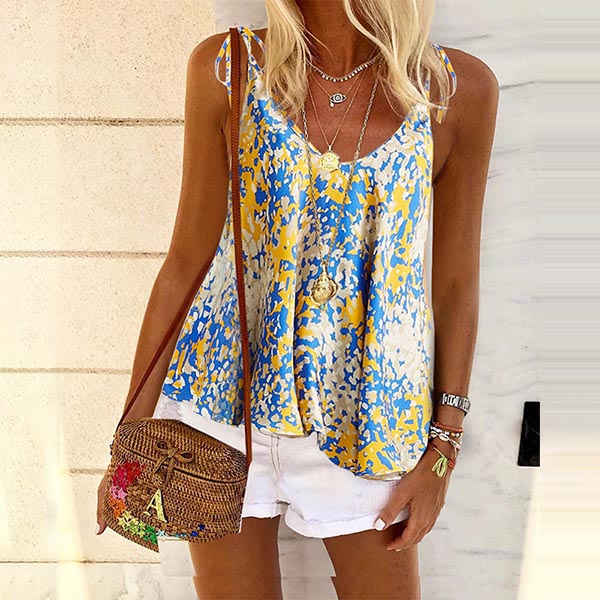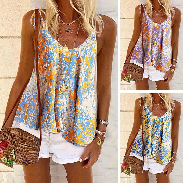 Enjoy the sun-soaked summer days with this relaxed and dreamy top. Its vibrant floral print details make this piece look so eye-catching. Sling style,with backless,v-neck and a loose silhouette,this piece can give you a cool and comfortable day as well as exude your feminine and sexy side.