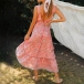 When walking on the beach with this beautiful and dreamy dress,you can easily be a pleasant sight! This maxi dress features vibrant floral print details,the backless and deep v-neck design can better highlight your sexy and feminine side. On these sunny days,adding a sweet straw hat would be more perfect!