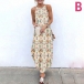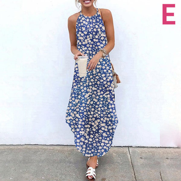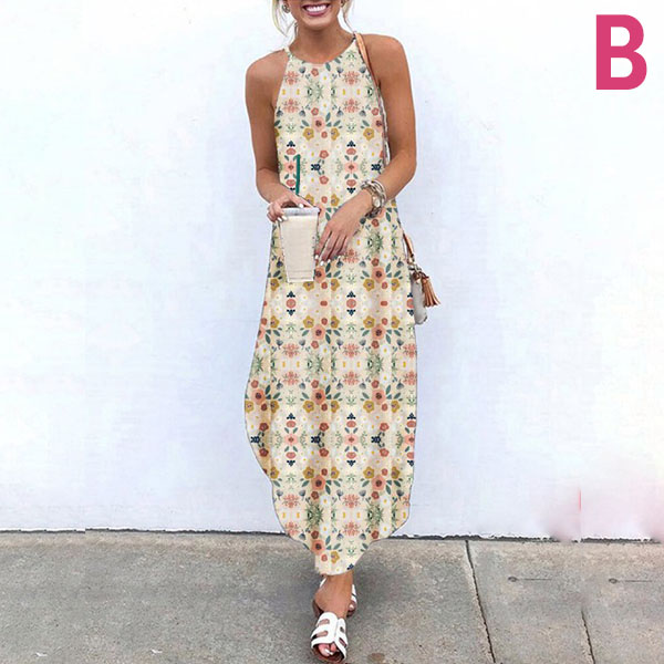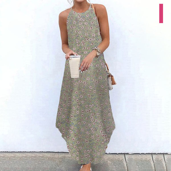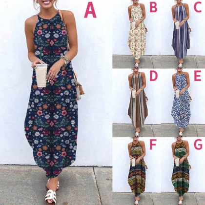 For your beach days and tropical getaways,this bohemian style dress can be your wise choice. Sling style,its chic and vibrant floral print details make this piece look so eye-catching,while the irregular hem design will further enhance its charm. On these sunny days,you can match with your sweet straw hat and bohemian style sandals for a charming beach look.