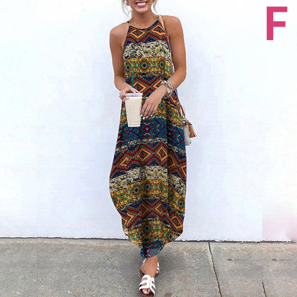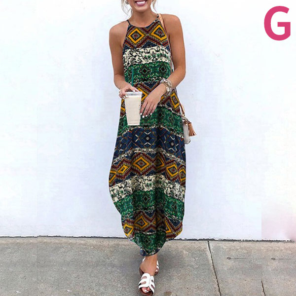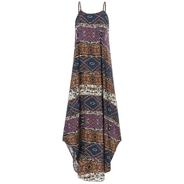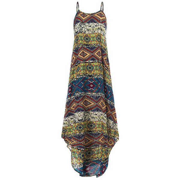 Bohemian Style Irregular Hem Printed Sling Dress