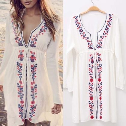 When planning a beach trip,you can take this dress with you! It is finished with long sleeve,