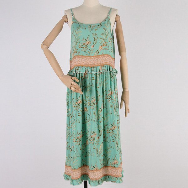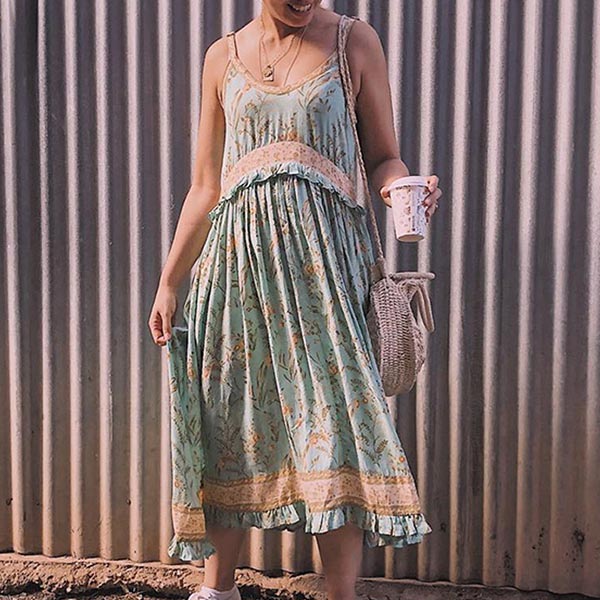 Bohemian Style Ruffle Spliced Printed Sling Dress