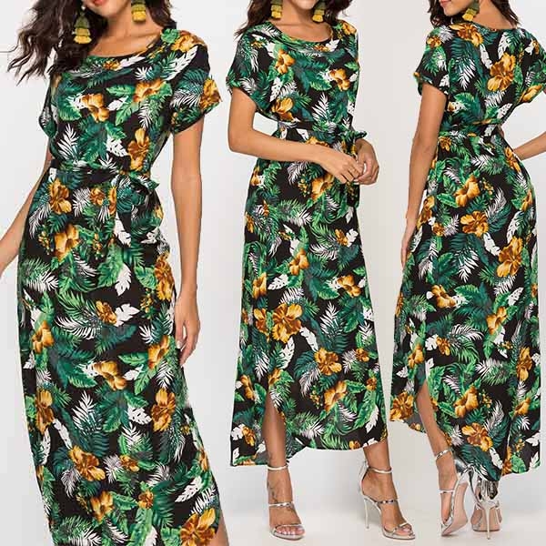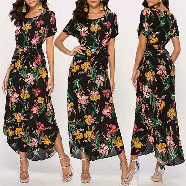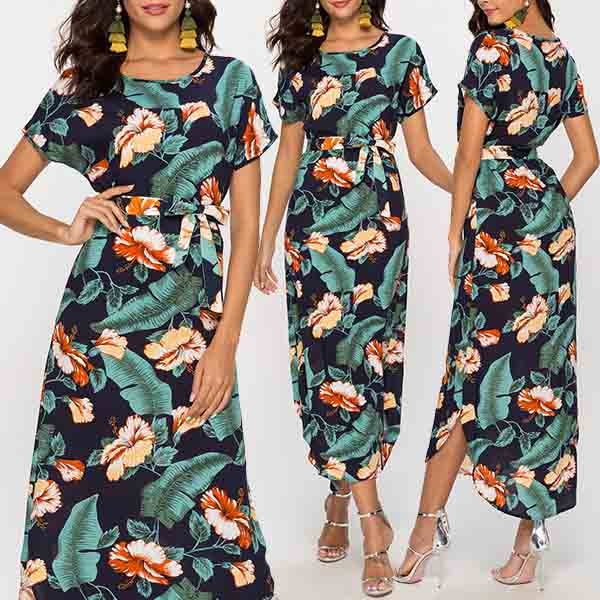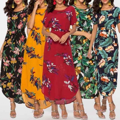 eye-catching floral print,finished with short sleeve,round neck and high waist design,this dress can give