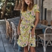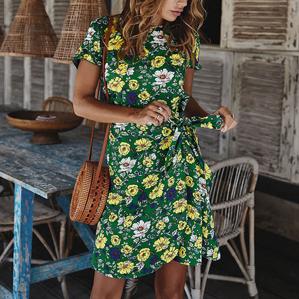 Add a dash of colorful vibes to your wardrobe with this beautiful dress. Its vibrant floral print details make this piece look so eye-catching. Finished with short sleeve,round neck and an irregular hem design,this dress makes it easy for any girl to look effortlessly charming and beautiful.