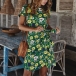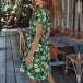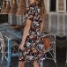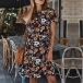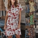 Bohemian Style Short Sleeve Round Neck Irregular Hem Printed Dress