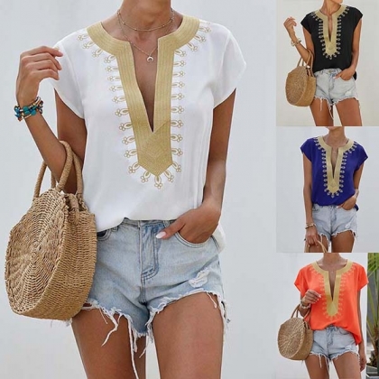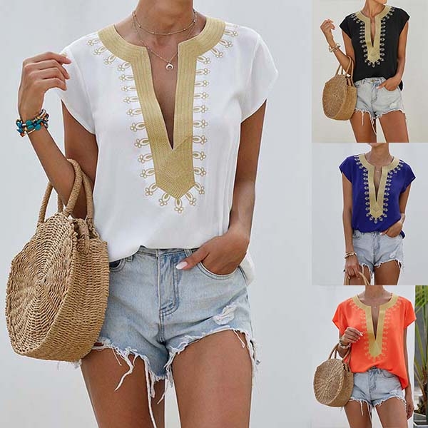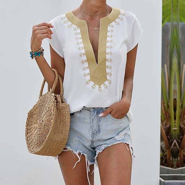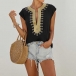 Combines of bohemian and sexy vibes,this short sleeve top is worth to have a place in your wardrobe.