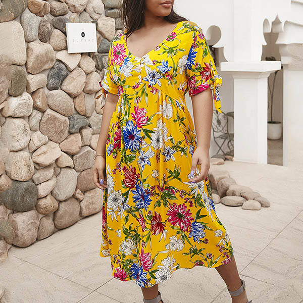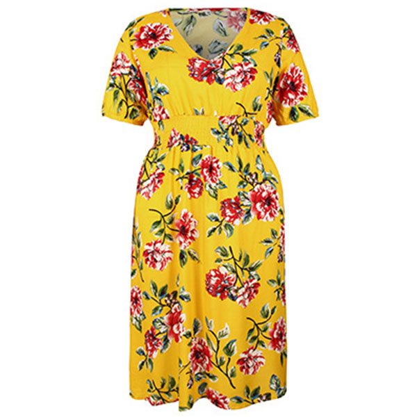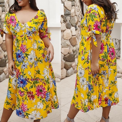Bohemian Style Short Sleeve V-neck Plus-size Printed Dress