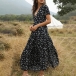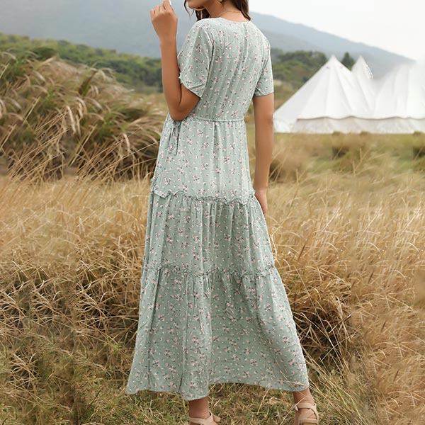 Bohemian Style Short Sleeve V-neck Printed Dress