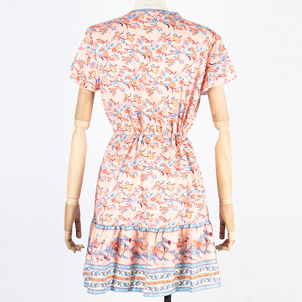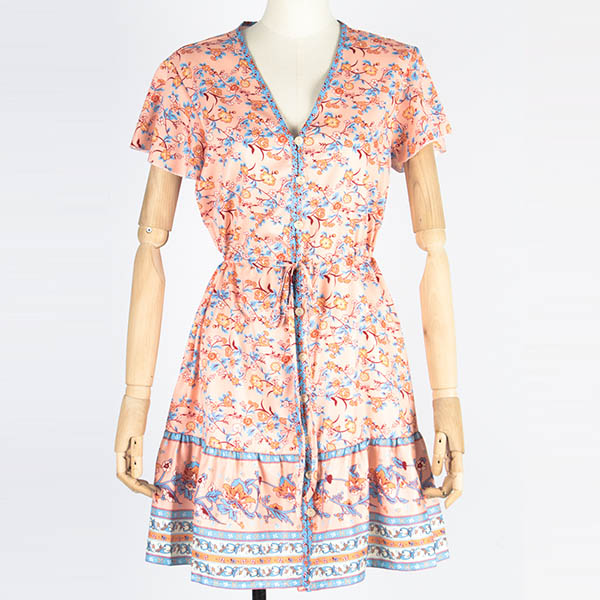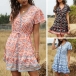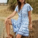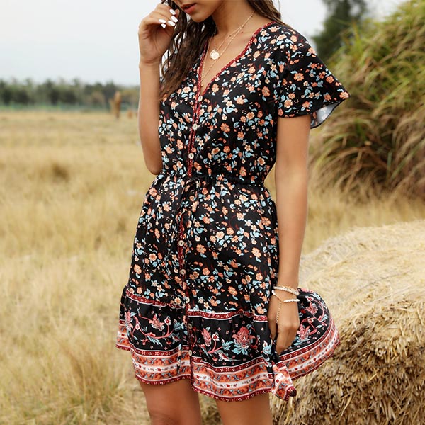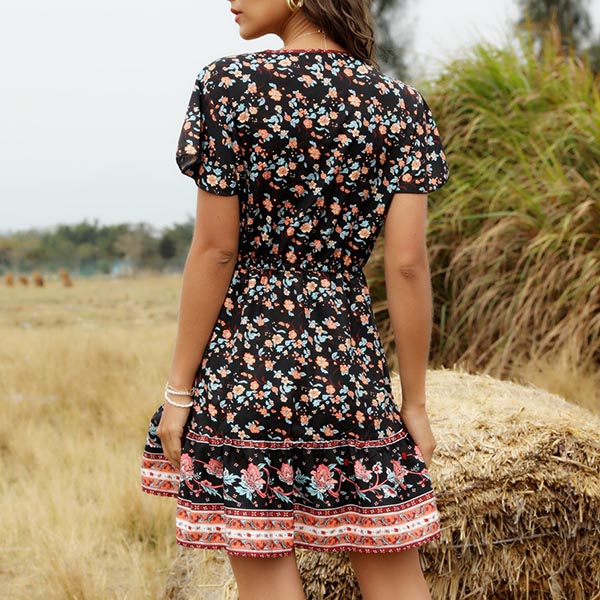 Bohemian Style Short Sleeve V-neck Printed Dress