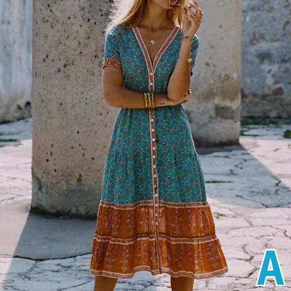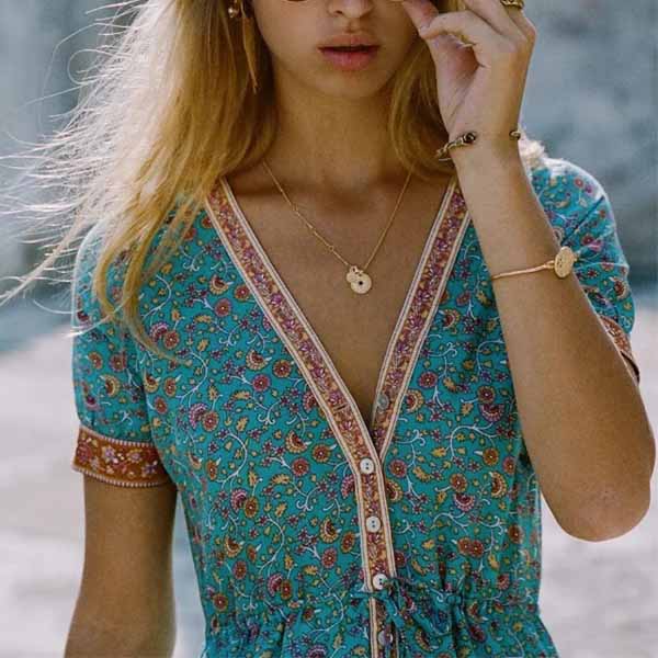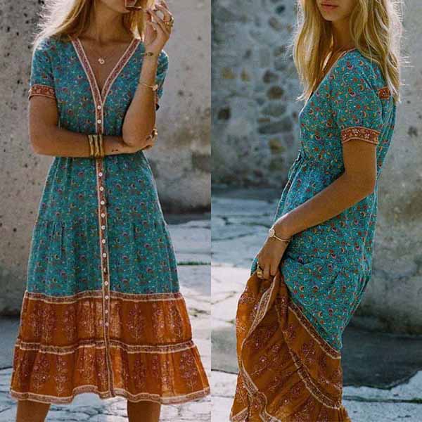 This bohemian-themed dress is perfect fit for your beach days and tropical getaways. The eye-catching printed