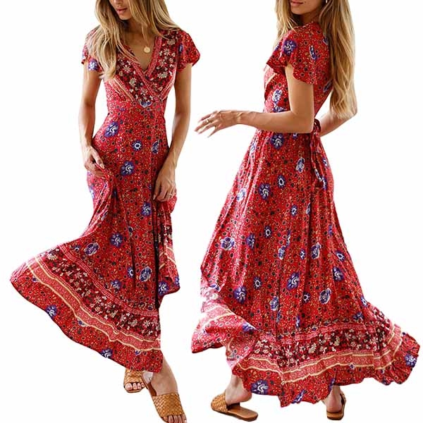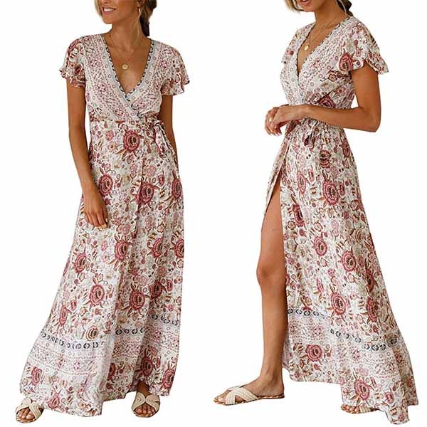 and eye-catching printed details,the v-neck and slit hem design will showcase your sexy and feminine side.