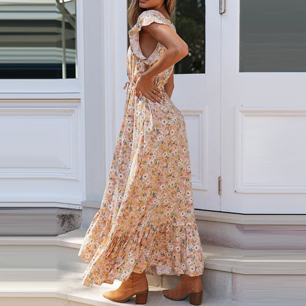 Looking for a dreamy, relaxed piece which is perfect for the beach days and tropical getaways? Then look no further than this dress! This bohemian-themed printed dress is finished with v-neck and an irregular ruffle hem,which can exude your sexy and flirty style while it gives you the comfy.