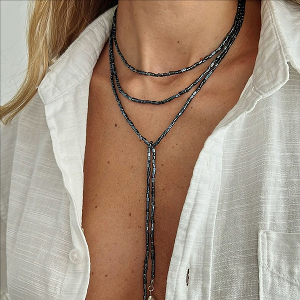 Y-halsband i mörka pärlor – boho-chic, tredubbel och minimalistisk