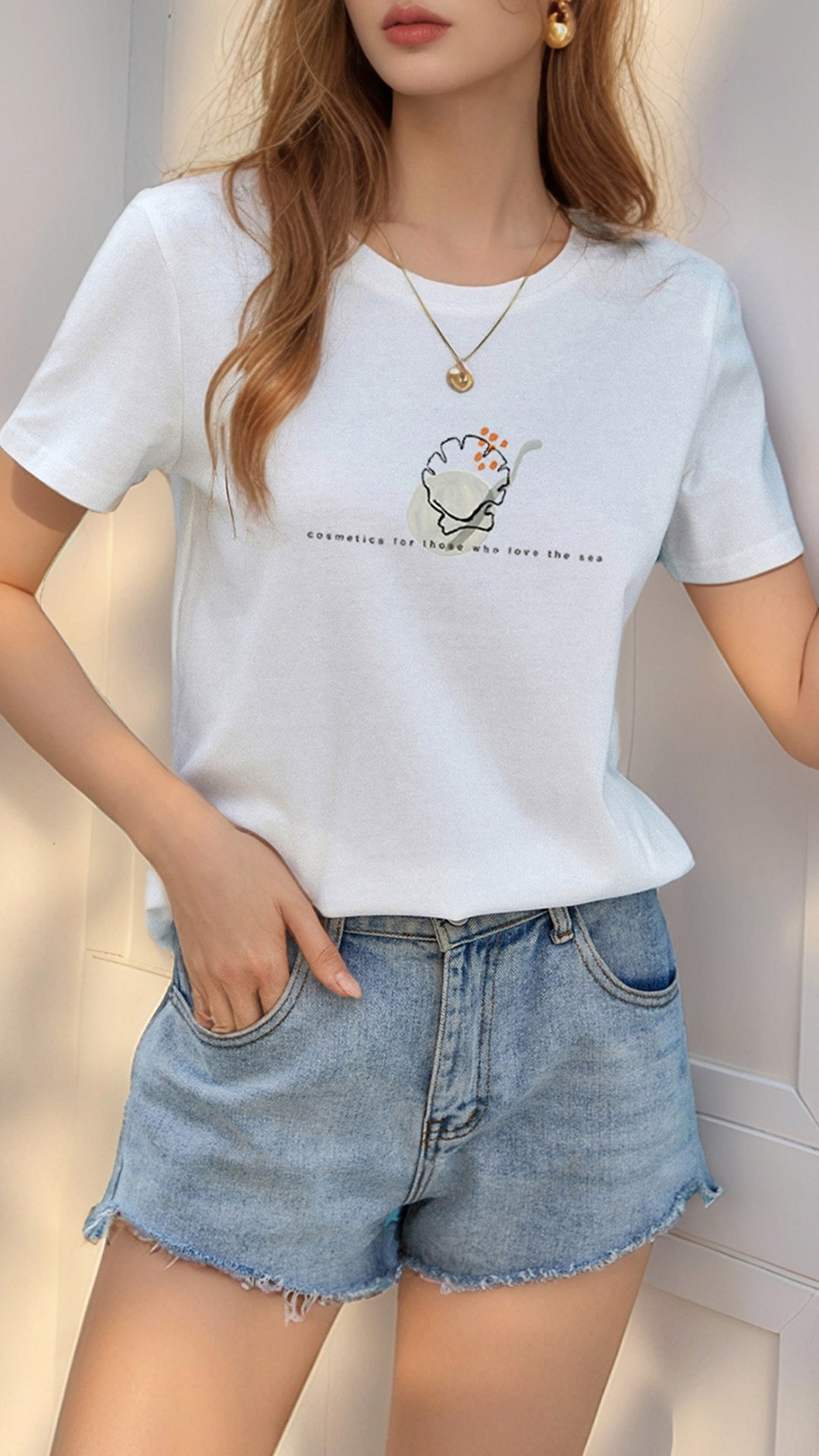 Casual kortärmad skjorta med rund hals och tecknat tryck