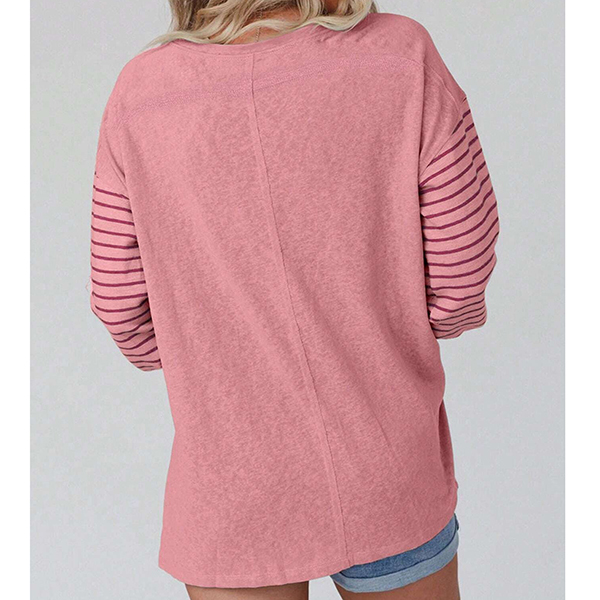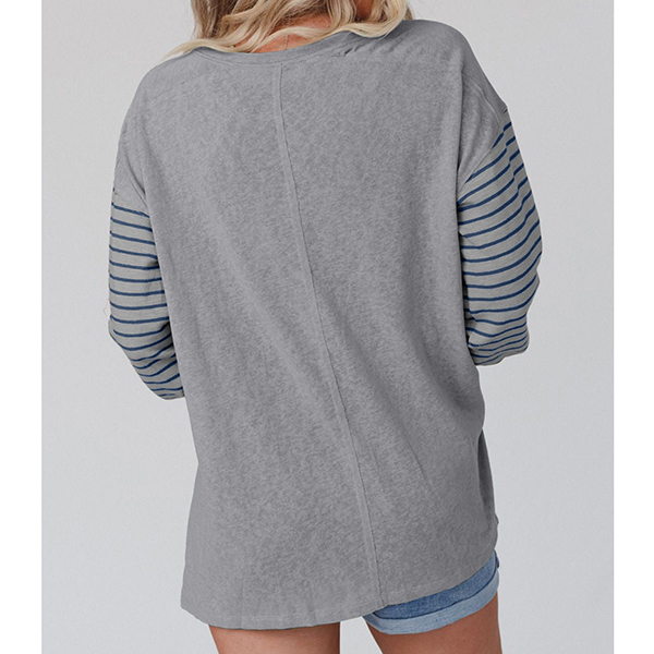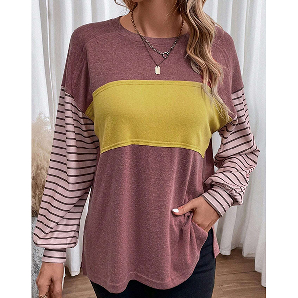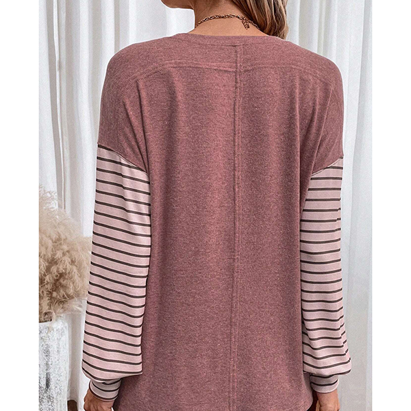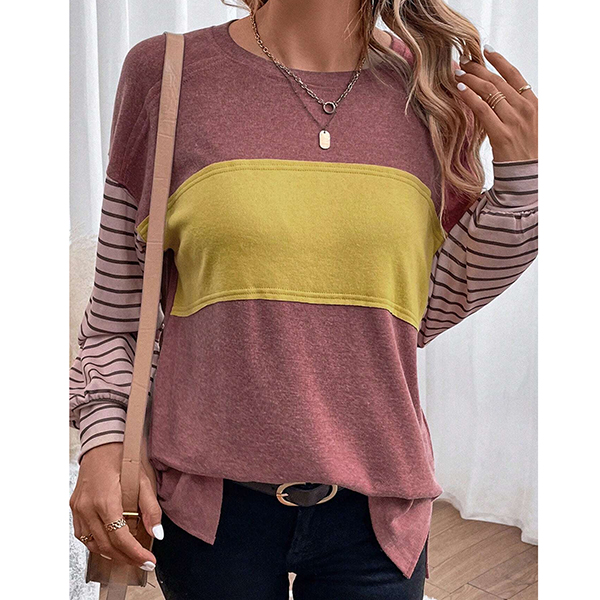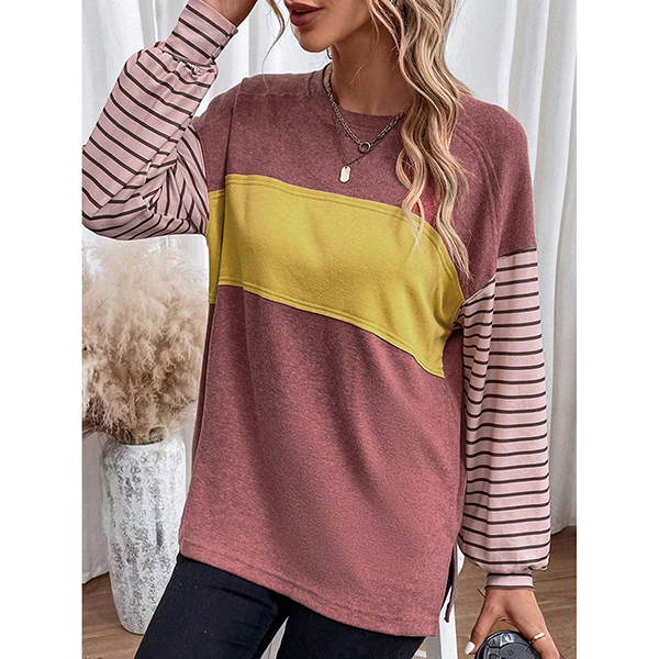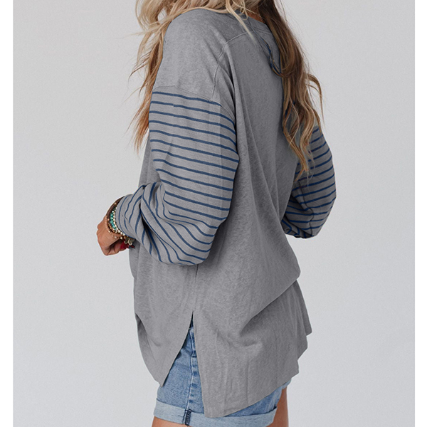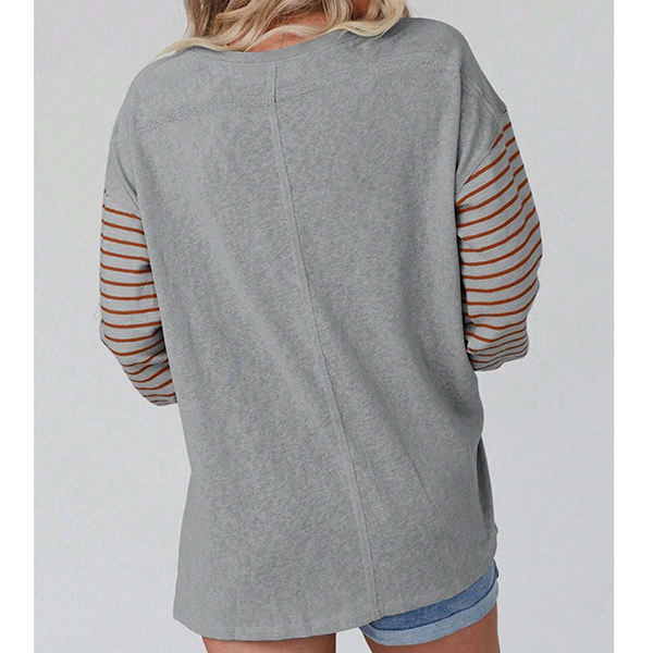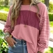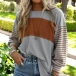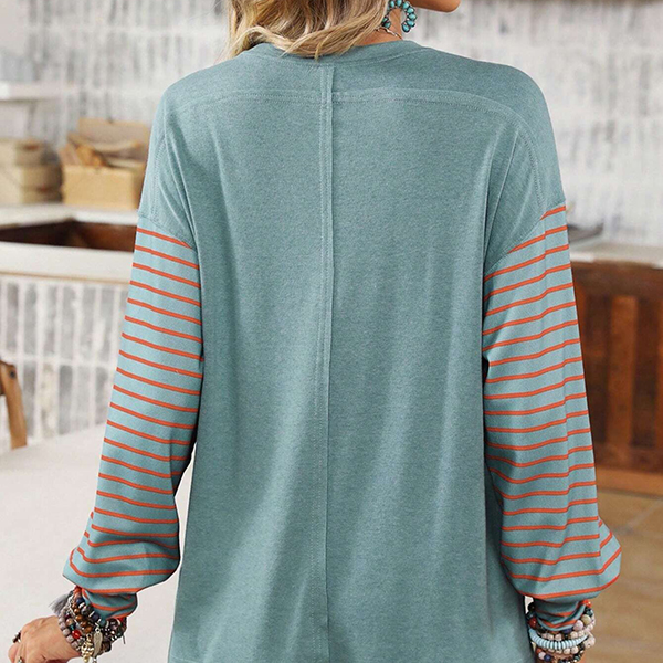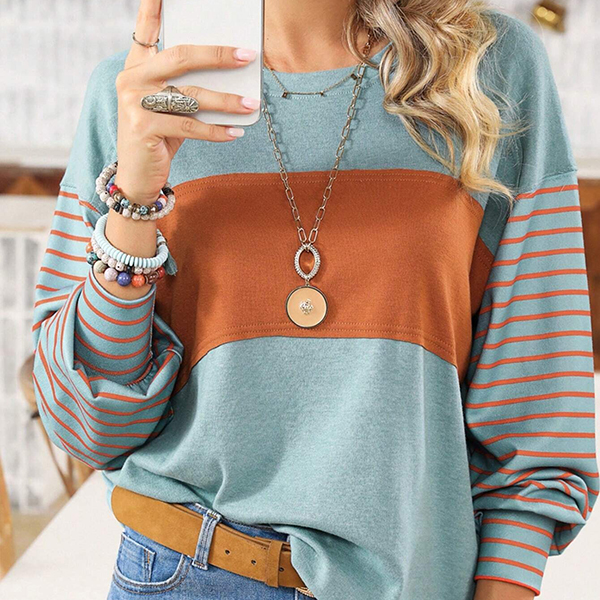 Randig långärmad topp med rund halsringning, kontrastfärger och avslappnad passform