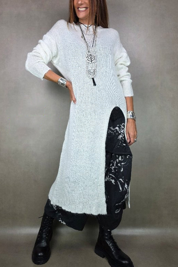Upptäck vår exklusiva stickade klänning med klassisk rund halsringning och sofistikerad sidoslits – den perfekta kombinationen av bekväm mysfaktor och elegant siluett. Den följsamma, högkvalitativa stickningen formar sig efter kroppen utan att ge avkall på rörelsefrihet, samtidigt som den luftiga konstruktionen håller dig sval och stilfull hela dagen. Välj denna mångsidiga favorit för allt från avslappnade fikadejter till festliga kvällar – en tidlös investering som lyfter varje outfit.