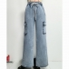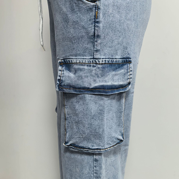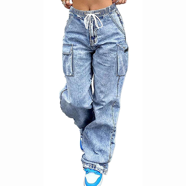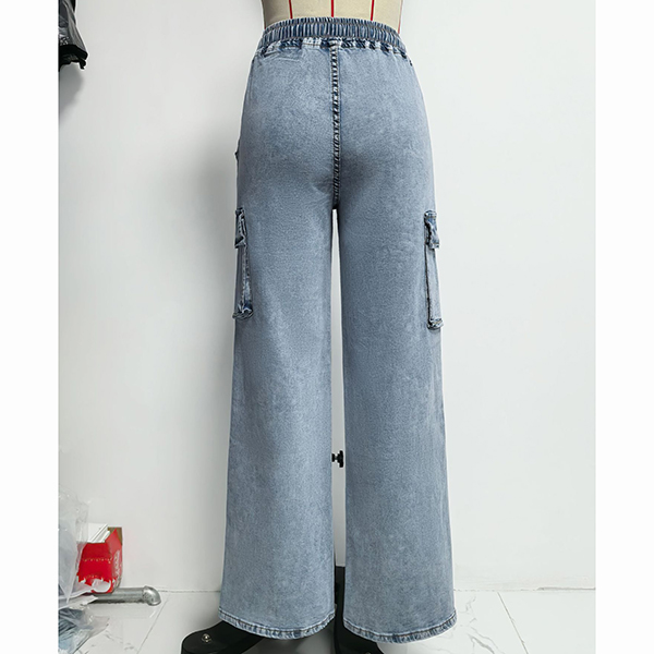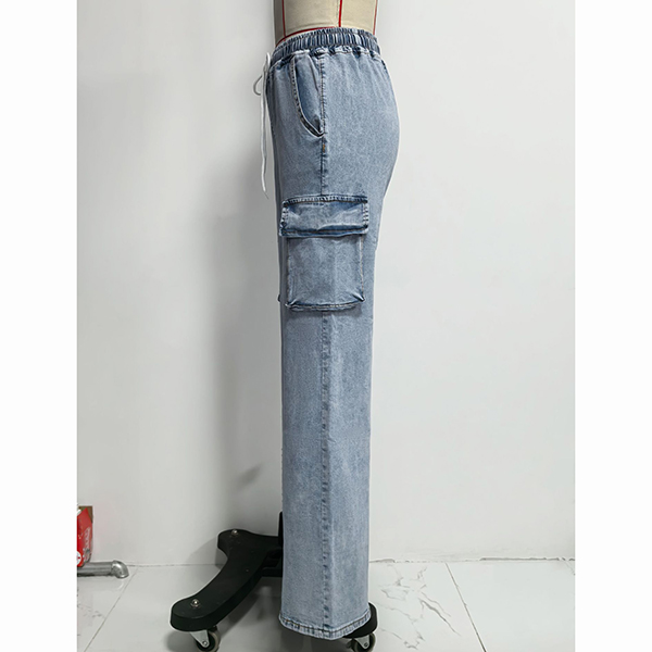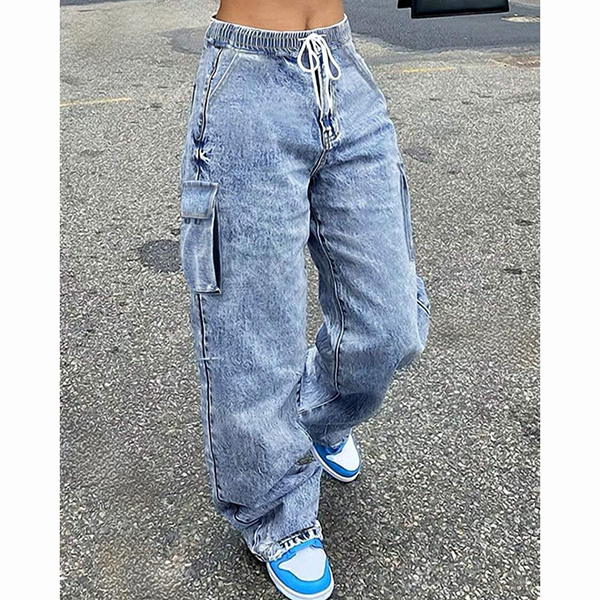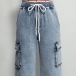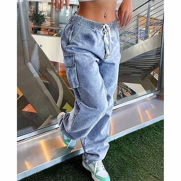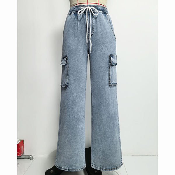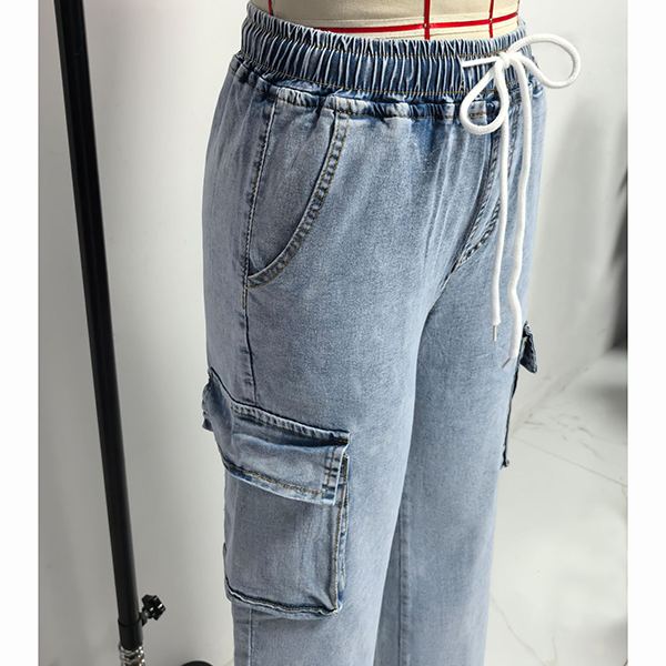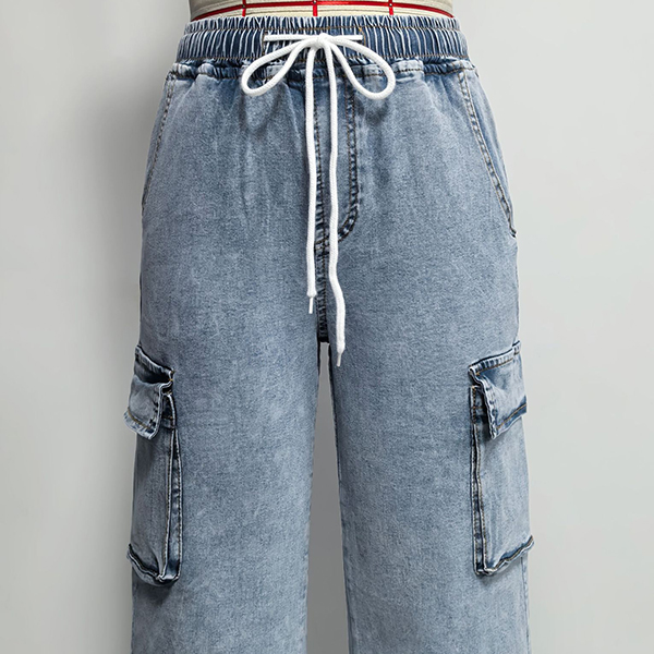 Casual jeans i denim med resår och dragsko i midjan, sidofickor och vid passform