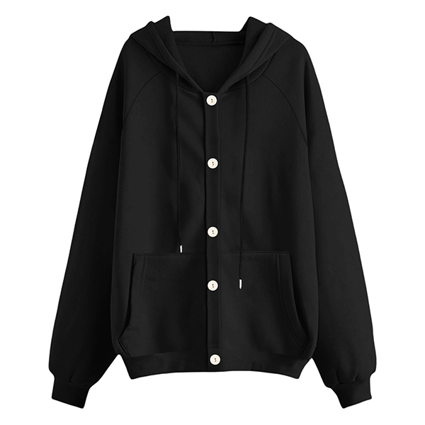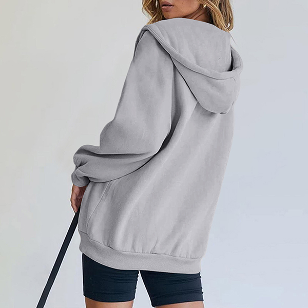 Långärmad tröja med dragskohuva och praktiska påsydda fickor