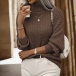 Grovstickad oversize-kofta med hög krage och sänkta axlar – avslappnad silhuett