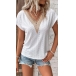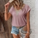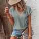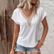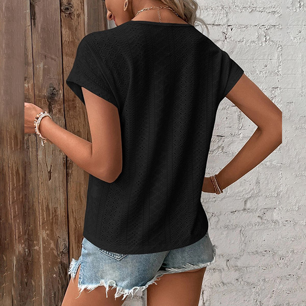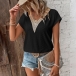 Casual Jacquard Lace Spliced V-neck Short Sleeve Shirt