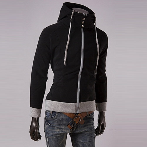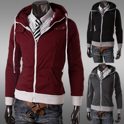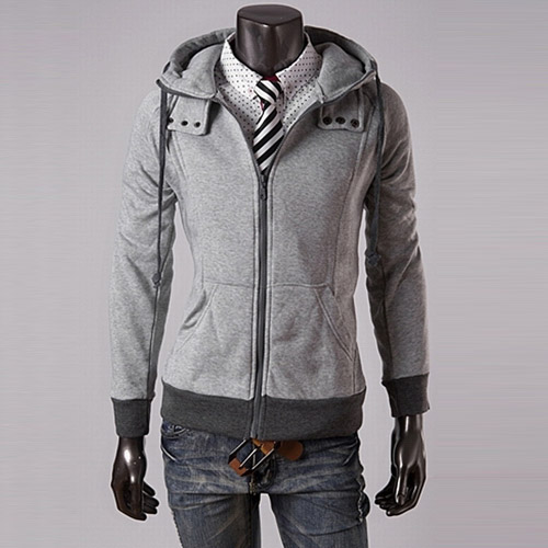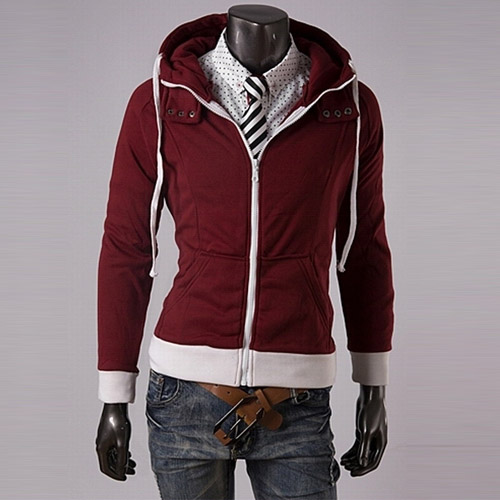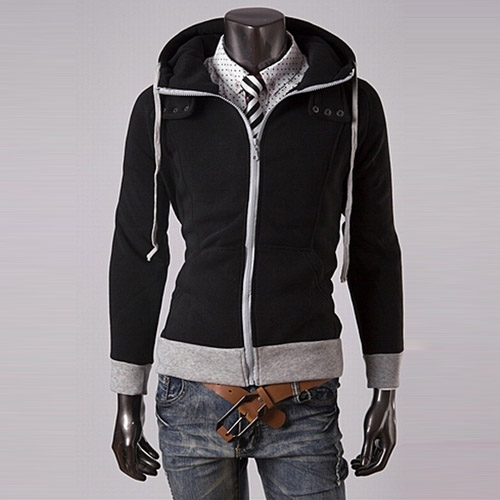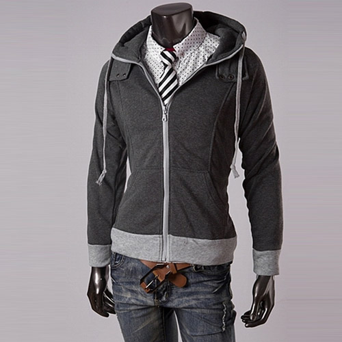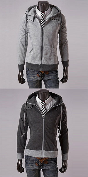 There are two pockets. The hem and cuff is made of different color, the contrast of color will bring out the felling of good slim. A protect design at the collar will let your neck more warm.