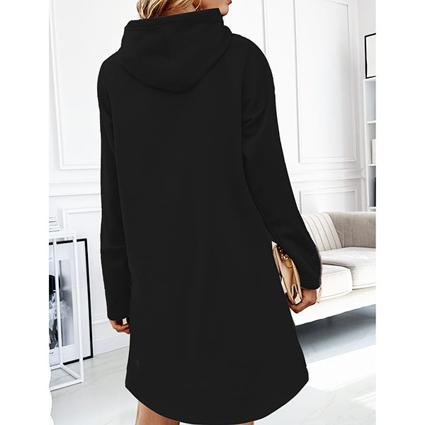Klänning i ledig modell med huva och pompomkedja, långärmad med dragkedja
