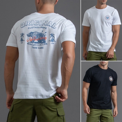 Casual Printed Round Neck Short Sleeve Shirt for Men