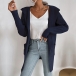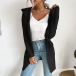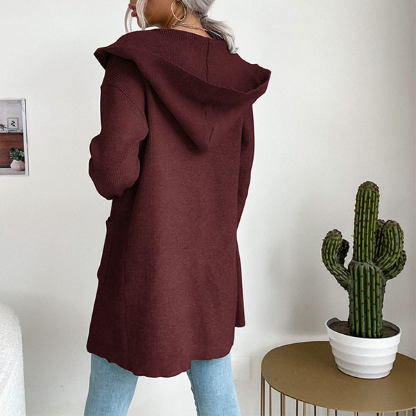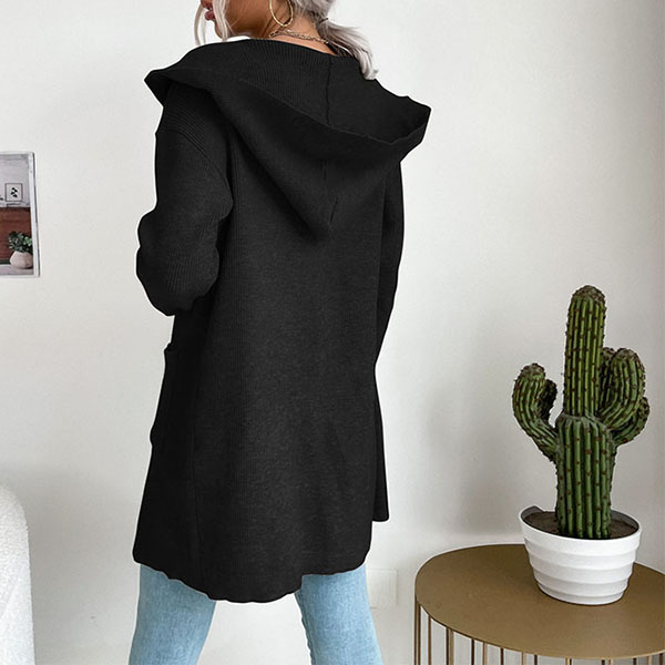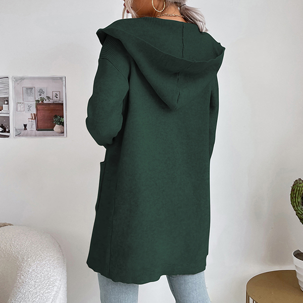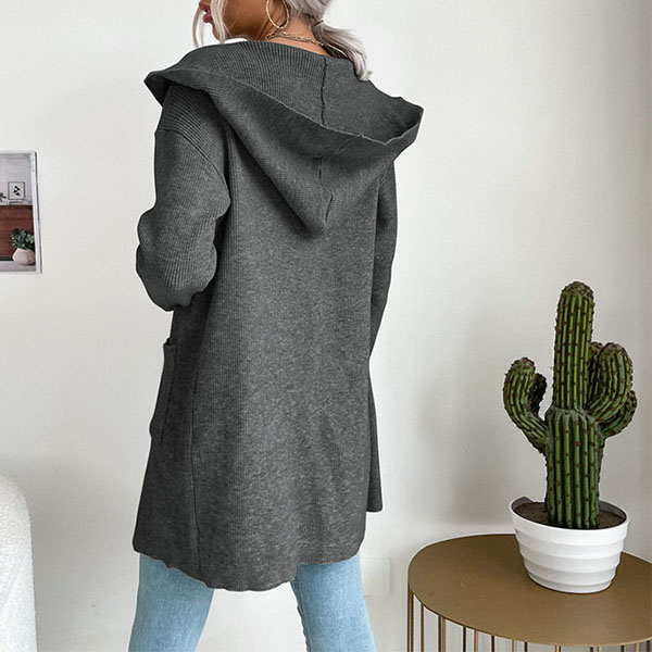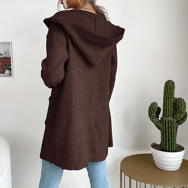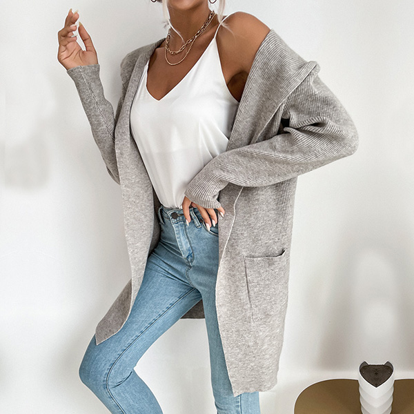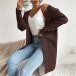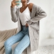 Långstickad enfärgad kofta med fickor och patchar – avslappnad passform