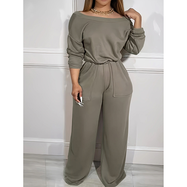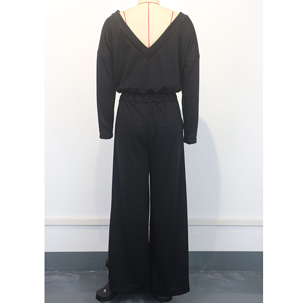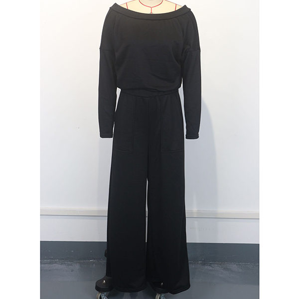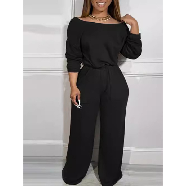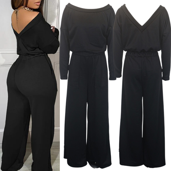 Enfärgad jumpsuit i bekväm modell med hög midja, sidofickor, öppen rygg och vida ben
