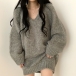 Denna bekväma tröja har en avslappnad, enfärgad stil med en smickrande V-ringning och dramatisk fladdermusdesign för en mysig och avslappnad elegans. Perfekt för vardagsbruk.