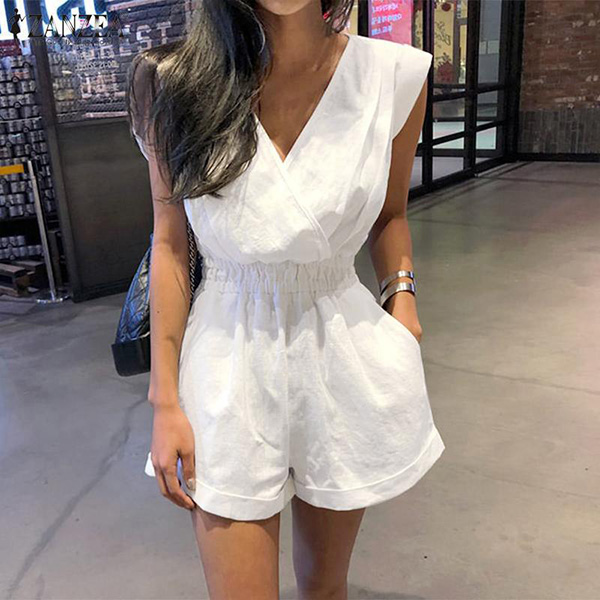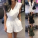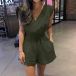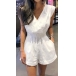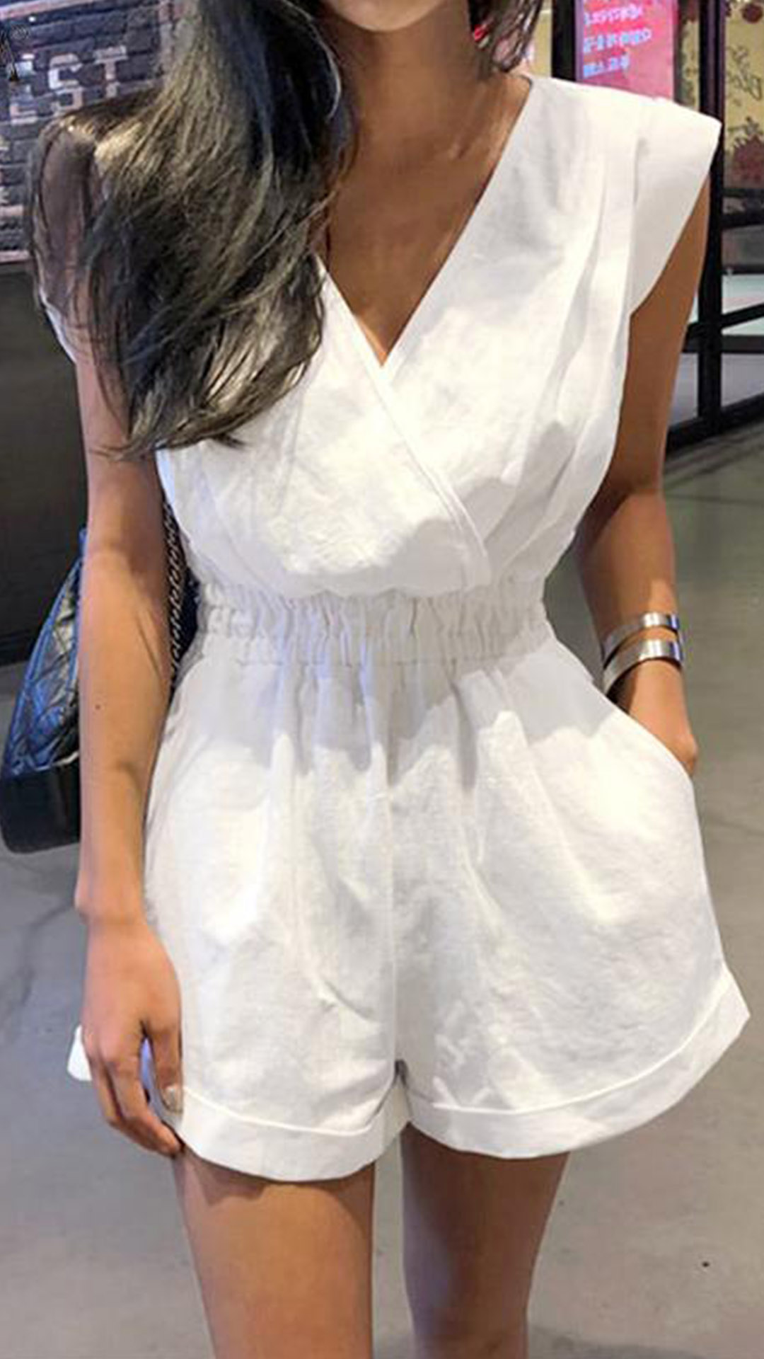 Casual enfärgad V-ringad kortärmad elastisk midja med stil