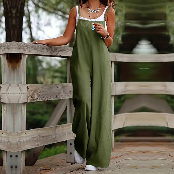 Casual lös jumpsuit med fyrkantig hals och vida ben
