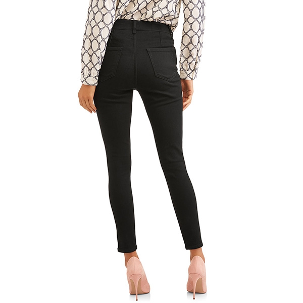 fabric with a hint of stretch in a high-rise silhouette, feature a zipper front with button closure,