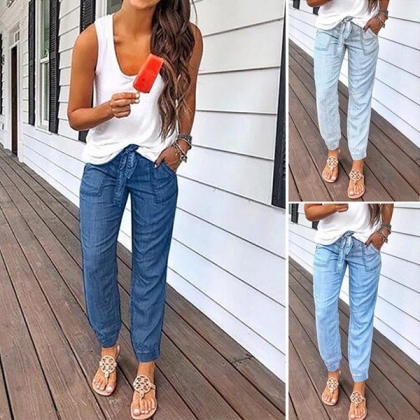 L : Waist : 78cm(30.71"); Hips : 100cm(39.37"); Front Rise : 28cm(11.02"); Back Rise : 39.5cm(15.55"); Length : 94cm(37.01"); Thigh : 26cm(10.24");