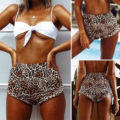 This playful leopard print shorts with the perfect length to roll and style to your summer time.