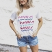 The colorful letters printed design makes it look more attractive. Finished with short sleeve and