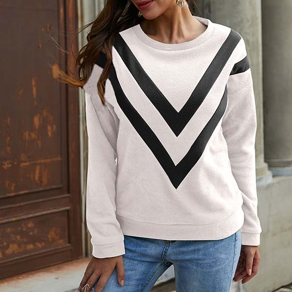 Casual Style Long Sleeve Round Neck Contrast Color Sweatshirt