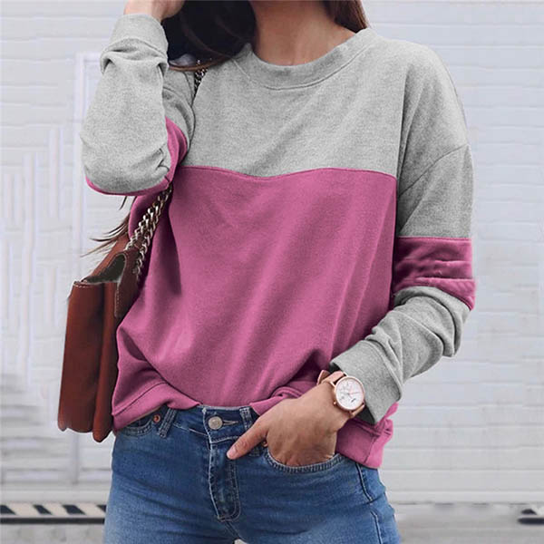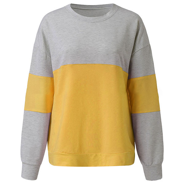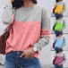 Casual Style Long Sleeve Round Neck Contrast Color Sweatshirt