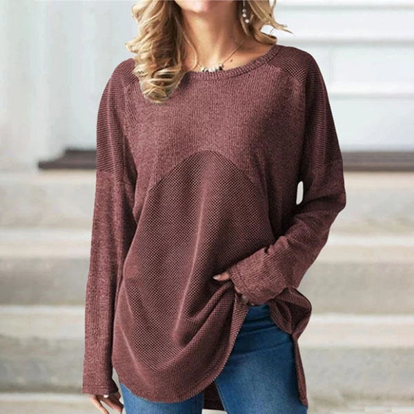 Casual Style Long Sleeve Round Neck Loose T-shirt