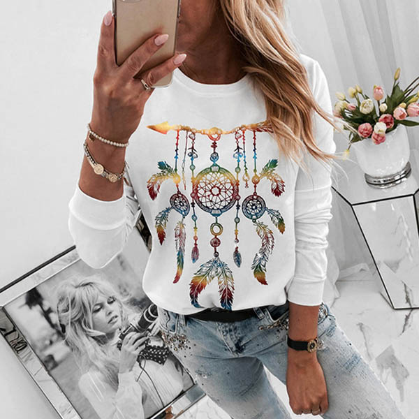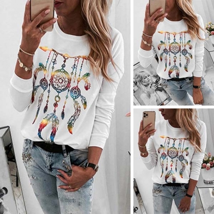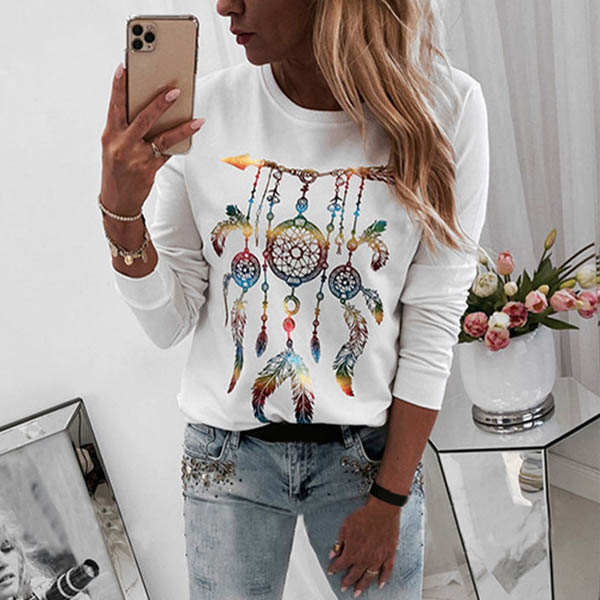 Casual Style Long Sleeve Round Neck Printed T-shirt