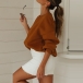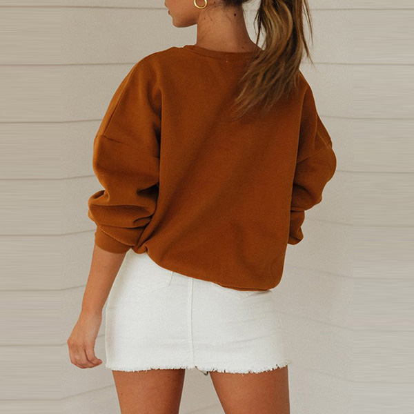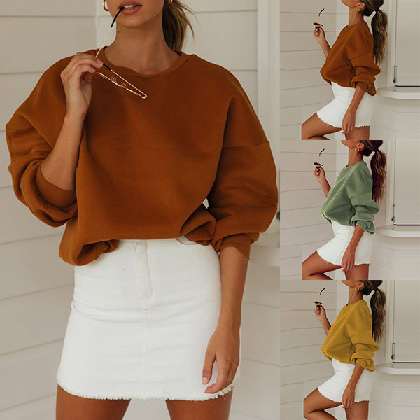 If you like casual style,then you can have a try this sweatshirt. Boasting a solid color,finished with long sleeve,round neck and a loose silhouette,this piece not only can give you a comfortable day,but also can offer you different matching styles.