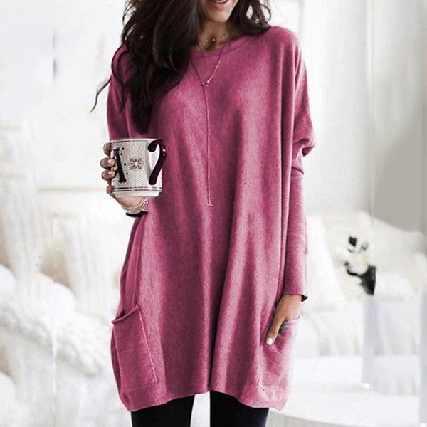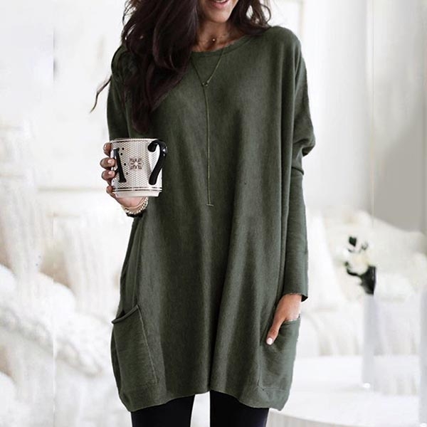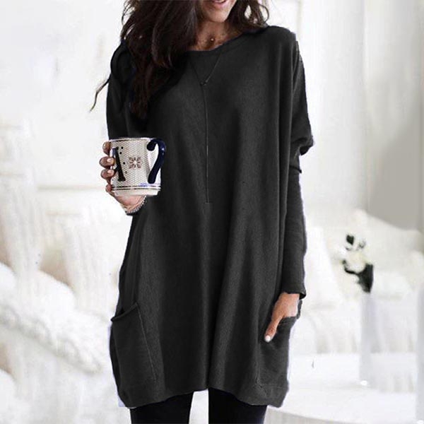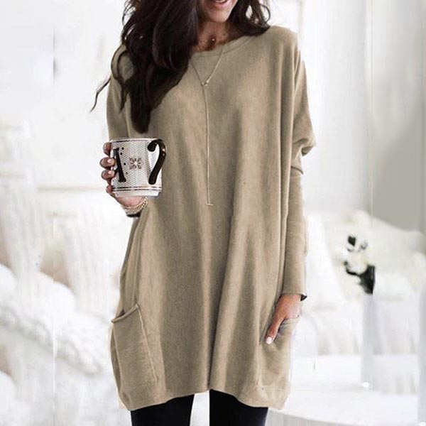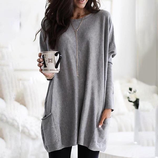 sleeve,round neck,front-pockets and a loose silhouette,this piece can keep you comfy while it maintains